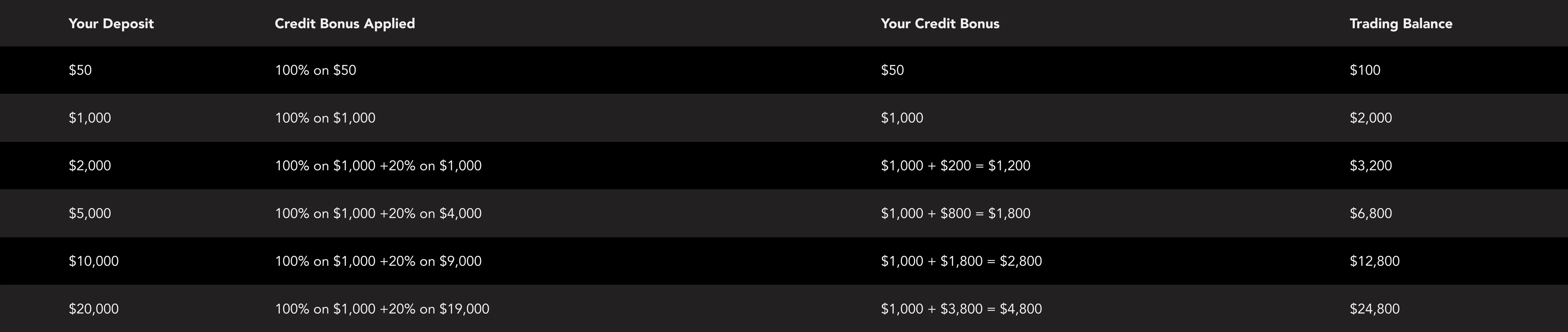 4.Eligible Clients (both new and existing clients), who meet the criteria set forth herein are able to receive credit bonuses or otherwise known as trading credit, equal to: