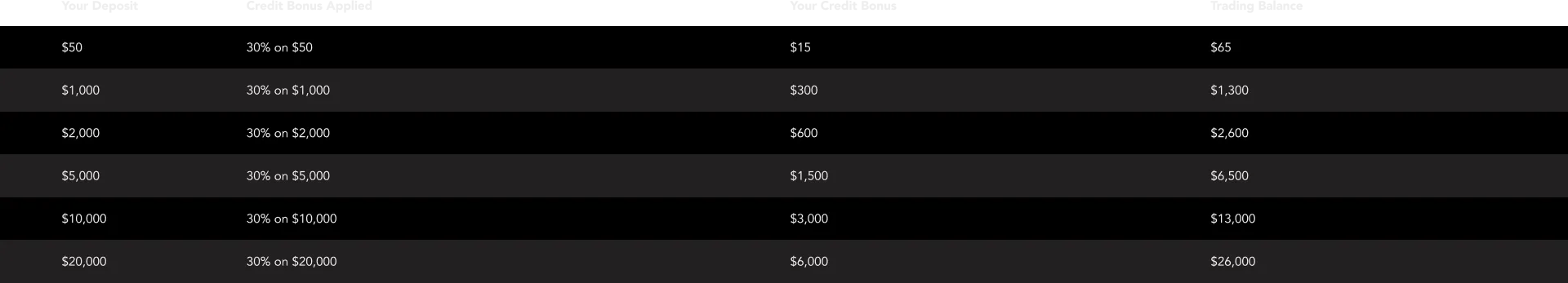 4.Eligible Clients (both new and existing clients), who meet the criteria set forth herein are able to receive credit bonuses or otherwise known as trading credit, equal to: