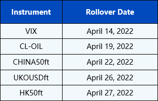 We would highly recommend clients to evaluate the potential risk and trade cautiously by ensuring accounts are sufficiently funded if they are keeping positions open of the above-mentioned products on the closing of the trading period on 22nd April 2022. Please also be aware of potential gapping risks on 25th April 2022 when markets reopen.