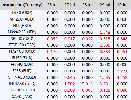 Please be advised that the dividends of the following index CFDs will be adjusted by upcoming ex-dividend dates. The comment for trading index CFDs will be in the following format “Div&<Product Name>&<Net Volume>” which show in the balance after the close of the day before the dividend payment date.