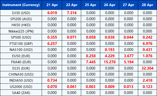 Please be advised that the dividends of the following index CFDs will be adjusted by upcoming ex-dividend dates. The comment for trading index CFDs will be in the following format “Div& <Product Name>&<Net Volume>”which show in the balance after the close of the day before the dividend payment date.