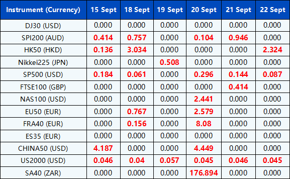 Please be advised that the dividends of the following index CFDs will be adjusted by upcoming ex-dividend dates. The comment for trading index CFDs will be in the following format “Div&<Product Name>&<Net Volume>” which show in the balance after the close of the day before the dividend payment date.